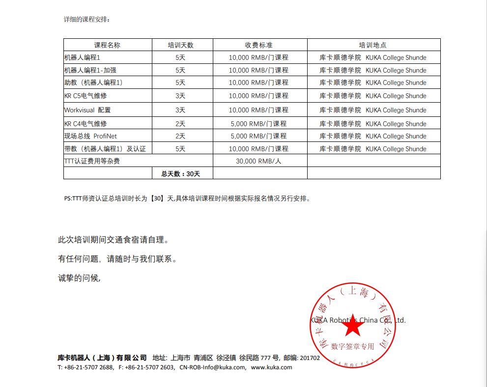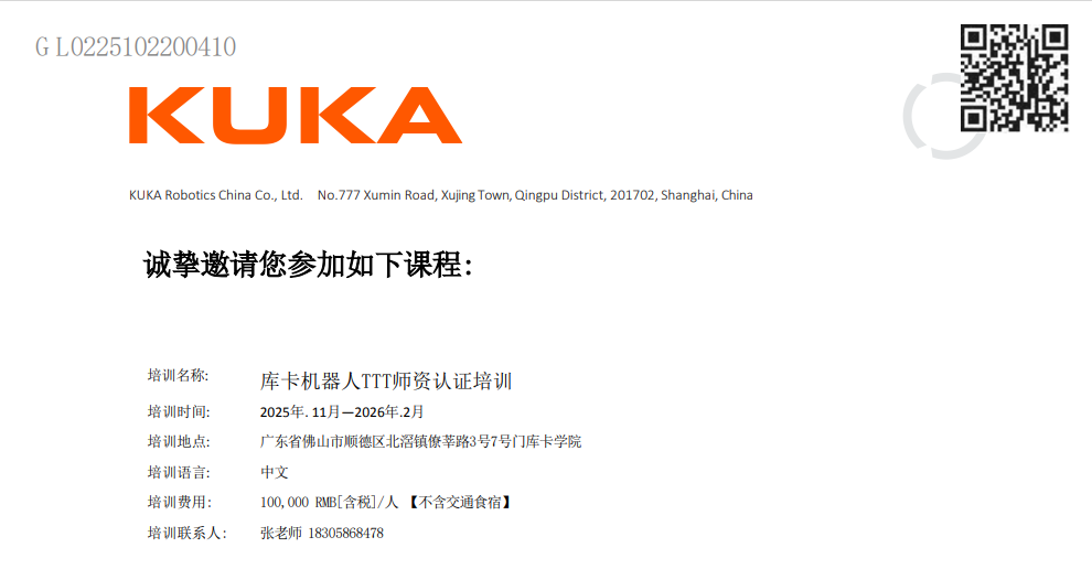 库卡机器人TTT师资认证培训-邀请函
